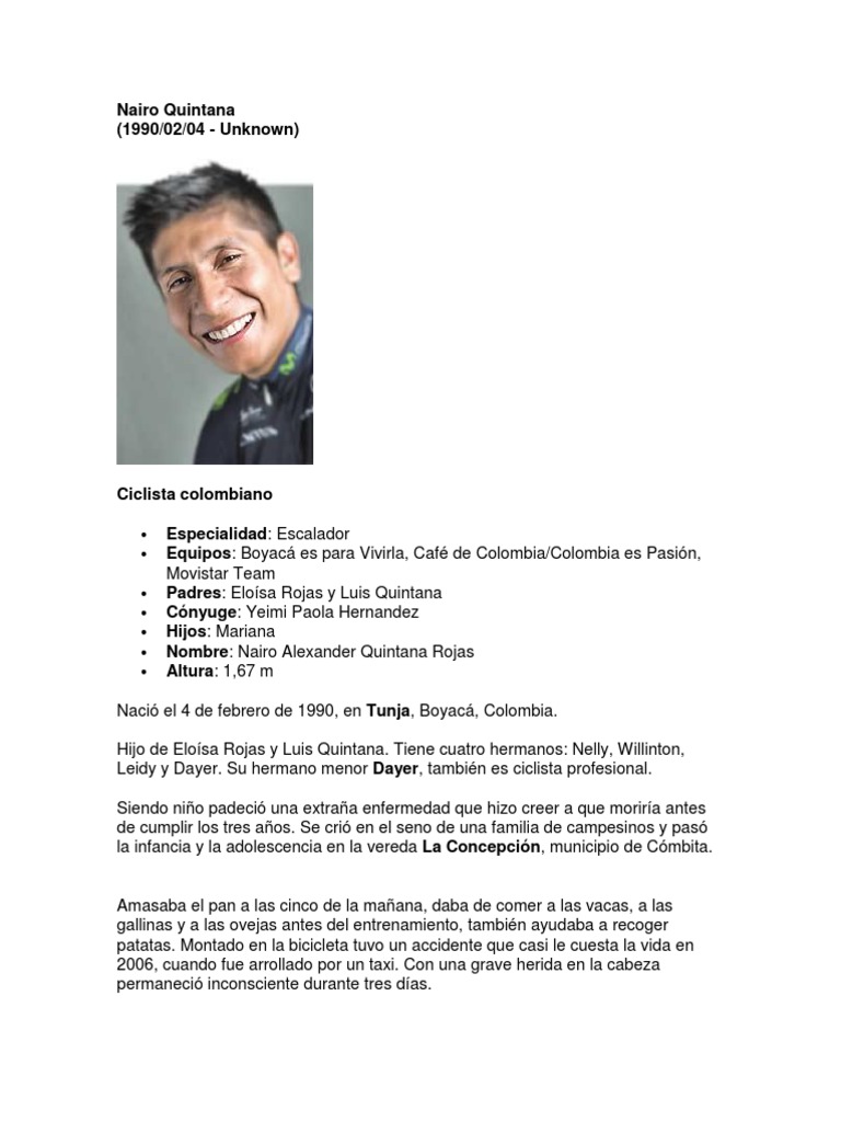 Artículos, videos, fotos y el más completo archivo de noticias de colombia y el mundo sobre nairo quintana. Nairo quintana ascendió a la séptima casilla del tour de los alpes. Yates took 4s time bonus for his third place and extended his lead in general ranking to 26 seconds on valverde, with quintana third at 33 second. Nairo alexander quintana rojas vida privada. Lea aquí todas las noticias sobre nairo quintana: